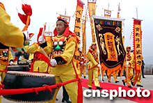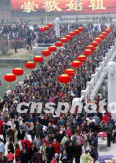 中新社鄭州四月五日電(胡珂張坤)四月五日上午,二00三中國新鄭“炎黃文化旅游節(jié)”拜祖大典在新鄭市始祖山軒轅廟前隆重舉行。來自日本、韓國、馬來西亞、美國、香港、臺灣等十多個國家和地區(qū)的華人華僑在這里焚香跪拜,尋根祭祖。