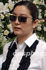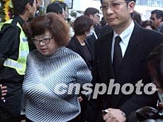 香港藝員沈殿霞四月八日在香港出席已故巨星張國(guó)榮舉殯。作者:錢興強(qiáng)