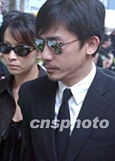 香港影帝梁朝偉四月八日在香港出席已故巨星張國(guó)榮舉殯。作者:錢興強(qiáng)
