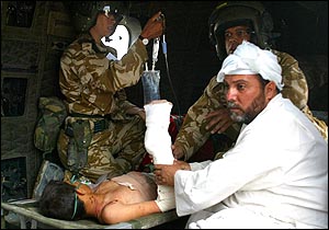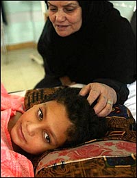 三天前,阿里對泰晤士報記者說,他最喜歡的學(xué)科是地理,因為他想旅行。昨天他忍著巨大的疼痛轉(zhuǎn)頭向他叔叔問:“我是不是很快就能旅行了?”他叔叔說他不但很快就能旅行,而且還能去捕魚。阿里家住巴格達(dá)東南部,在一次轟炸中他的床單著火,他自己火燒傷。在這次事故中,他的父母也雙雙死于這次襲擊,當(dāng)時他母親已經(jīng)懷孕5個月。另外,他的兄弟和幾個姐妹也遇難。