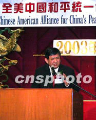 全美中國和平統(tǒng)一促進(jìn)會(huì)聯(lián)合會(huì)四月十六日晚在紐約華埠舉行籌款餐會(huì),會(huì)長程君復(fù)在致辭中呼吁海外華人團(tuán)結(jié)起來推動(dòng)“反獨(dú)促統(tǒng)”。作者:趙海燕