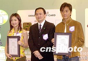 歌影紅星楊千嬅、鄭伊健4月17日在香港獲香港郵政委任為電子證書大使,協(xié)助推廣在新智能身份證加入電子證書,鼓勵(lì)市民廣泛使用。圖為香港郵政署長(zhǎng)蔣任宏向楊千嬅、鄭伊健頒發(fā)委任狀。鄧慶樂 攝
