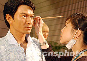 第二十七屆香港國際電影節(jié)頒獎禮四月十七日晚在香港文化中心舉行, 倫敦杜莎夫人蠟像館特意將精心制作的劉德華蠟像在頒獎禮上展示,引人注目。錢興強 攝