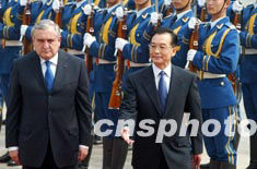 組圖:溫家寶舉行儀式歡迎法國(guó)總理拉法蘭