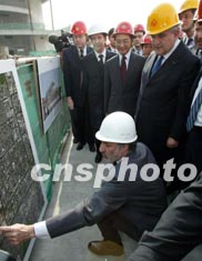國務(wù)院總理溫家寶二十五日陪同法國總理拉法蘭參館國家大劇院工地時,聽取設(shè)計師介紹情況。作者:滿會喬