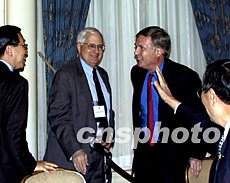 應(yīng)美國百人會(huì)第十二屆年會(huì)邀請,兩位美國前駐華大使芮孝儉(左二)和羅德(右二)二十五日在紐約百人會(huì)年會(huì)專題討論會(huì)上發(fā)表演講,兩人均稱目前美中關(guān)系發(fā)展良好,臺(tái)灣問題仍是美中關(guān)系的核心問題。作者:趙海燕
