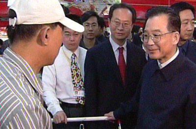 溫家寶二十六日與副總理吳儀一起在北京市建筑工地、超市、社區(qū)、高?疾臁
