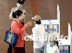 香港一些購物商場為預(yù)防“非典型病毒”傳播,紛紛設(shè)立衛(wèi)生站方便市民清潔,并宣傳防止SARS傳播方法。洪少葵 攝