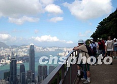 受到非典型肺炎影響下,香港市民不敢去人流擠迫的地方,山頂就成為呼吸新鮮空氣的好地方,成為近期郊游熱點。譚達(dá)明 攝