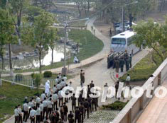 七日晚,小湯山醫(yī)院將接轉(zhuǎn)第五批病人,從而使這里入住的患者總數(shù)達(dá)五百人左右。圖為小湯山醫(yī)院隔離區(qū)內(nèi)外。中新社記者:安然