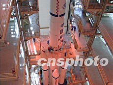 中國(guó)航天科技集團(tuán)公司五月初透露,神舟五號(hào)載人飛船和發(fā)射飛船的長(zhǎng)征二號(hào)F火箭的研制工作進(jìn)展順利,將于年內(nèi)如期升空。中新社圖