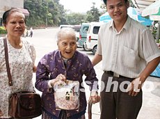據(jù)潘伯介紹,他母親生于一八八五年十一月十二日,生育了兩男兩女,潘老伯排行最小,兄妹四人只有他一人還健在。潘老伯生育了七個(gè)子女,目前共有十二個(gè)孫子。其姐姐的孫子也已娶妻生子,母親已有玄外孫了,F(xiàn)在,政府每年都組織醫(yī)生上門為老人體檢,醫(yī)生說阿婆身體不錯(cuò),還能再長(zhǎng)壽多年。