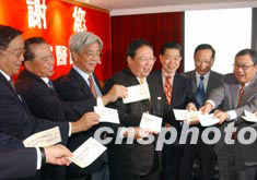 為表彰香港前線(xiàn)抗炎醫(yī)護(hù)人員,香港六百多個(gè)民間團(tuán)體首次大聯(lián)盟,五月十三日在香港共同發(fā)起“香港是我家──支持前線(xiàn)醫(yī)護(hù)人員籌款活動(dòng)”。圖為香港民政事務(wù)局局長(zhǎng)何志平出席捐款儀式,對(duì)捐款者表示感謝。中新社傳真 錢(qián)興強(qiáng) 攝