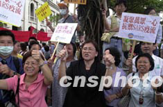 香港市民5月15日匯集在立法會外,高舉標語“萬眾一心,抗御SARS”及支持特首董建華。中新社傳真 洪少葵 攝