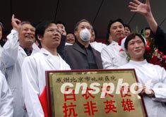 圖:謝飛今日于地壇醫(yī)院治療"非典"康復(fù)出院