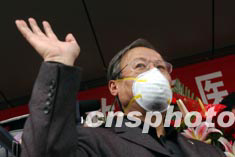 圖:身染"非典"的著名電影導(dǎo)演謝飛康復(fù)出院