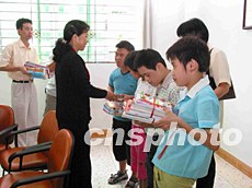 五月十八日是中國助殘日,廣東汕頭市殘聯(lián)及澄海區(qū)負責人為殘疾學(xué)生送去助學(xué)金和學(xué)習書籍。作者:曾干普