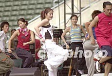 歌星梅艷芳5月23日出席香港大球場茁壯行動「1:99音樂會」彩排,梅艷芳身兼「1:99音樂會」總監(jiān)在炎熱的天氣下,落力督導(dǎo)彩排。中新社傳真 鄧慶樂 攝