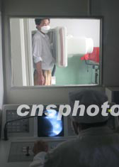 五月二十八日,一位外地青年在北京市平安醫(yī)院放射科接受胸透檢查。根據(jù)北京市的有關規(guī)定:近期來北京務工經(jīng)商的外地人員須經(jīng)過體溫、肝功、胸透及常規(guī)檢測合格,領取《健康證》后方可就業(yè)。中新社記者:史利