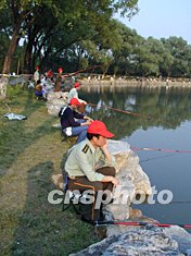 為使我們?cè)诟綦x區(qū)內(nèi)的生活有聲有色,院政治部在我們活動(dòng)區(qū)的湖泊里投放七千斤鯉魚,舉行釣魚比賽。我這個(gè)早就想當(dāng)官的“官迷”終于過了一把癮,擔(dān)任此次釣魚比賽裁判組的副裁判長。可是以前我從沒摸過魚桿,怎么辦呢?好在有Internet,可以臨陣磨槍。我一大早趴在電腦前,研究了半天,從魚兒的喜好到水質(zhì)的要求、從投桿下水到提桿上岸,無不了解個(gè)清清楚楚明明白白。參賽人員更是如此,早就按捺不住來到湖邊,熟悉水域、勘察魚情、幾個(gè)人指指點(diǎn)點(diǎn)互相交流著心得,把醫(yī)務(wù)人員嚴(yán)謹(jǐn)?shù)墓ぷ鲬B(tài)度淋漓盡致地發(fā)揮到了賽場上,忙個(gè)不亦樂乎!有經(jīng)驗(yàn)之人傳授:香油拌面粉乃魚兒最喜愛之食品也!更有詩興大發(fā)者,曰:小湯山前喜鵲飛;桃花流水鯉魚肥;小紅帽,白蓑衣;斜風(fēng)細(xì)雨不須歸。