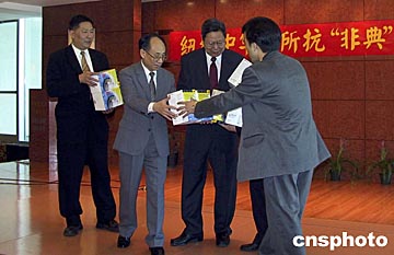 中新社紐約五月三十日電(記者趙海燕)主要由旅美臺灣同胞組成的傳統(tǒng)僑團(tuán)中華公所三十日上午將一萬五千只口罩送到中國駐紐約總領(lǐng)館,以此表達(dá)對祖國大陸抗擊“非典”的支持。