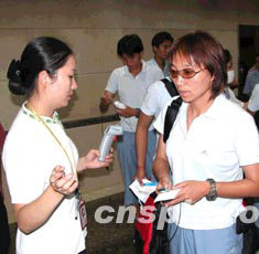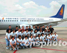 中新社北京六月五日電(記者 沈晨)中國國家女子足球隊一行二十八人今日中午十一時四十五分抵達廣州白云機場,稍做停留后搭乘下午四時的泰航班機前往泰國曼谷,出征第十四屆亞洲杯女足賽。