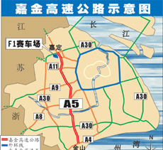 上海嘉金高速公路發(fā)展有限公司董事長張榮坤表示,為配合國際汽車城F1賽車場的建設(shè),工程指揮部將采取進(jìn)一步的技術(shù)措施和加快建設(shè)速度,一期工程(嘉定至北青公路)將提前于明年九月建成通車,以確保F1國際賽車大賽順利進(jìn)行;整個(gè)工程將于二00五年底全線建成通車。