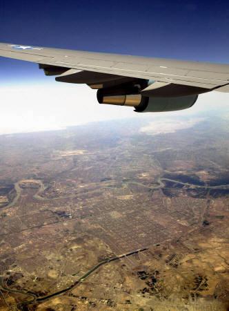 中新網6月6日電 美國總統布什月5日在搭乘專機“空軍一號”從卡塔爾返回華盛頓的途中,飛越伊拉克首都巴格達上空。