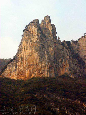 “放舟下巫峽,心在十二峰”,神女峰旅社對(duì)面,正是我魂?duì)繅?mèng)繞的神女峰。遠(yuǎn)遠(yuǎn)望去,峰上一塊巨石突兀而起,在云霧繚繞中,宛如一個(gè)披著薄紗的絕美少女。我被眼前奇異的景象驚呆了,在雨中久留不去。關(guān)于神女峰在巫峽一帶還有一個(gè)美麗的傳說:遠(yuǎn)古時(shí)代,西天王母的小女兒瑤姬,被大禹治水百折不撓的精神所感動(dòng),便施展仙術(shù),助其疏導(dǎo)了三峽峽水道,消除了水患。但瑤姬并未離去,她仍然屹立在巫山之巔,為行船指點(diǎn)航路,年復(fù)一年,終于變成了那座令人向往的神女峰;她的待從也化作—座座山峰,靜靜地守立在神女的身旁,這就是巫山十二峰。神女峰每天第一個(gè)迎來燦爛的朝霞,又最后一個(gè)送走絢麗的晚霞,故又名“望霞峰”。再過幾天,三峽大壩蓄水至神女膝下,高峽出平湖,想必神女梳妝再也不必彎腰取水了吧。