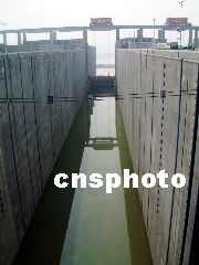 6月9日上午8點左右,三峽水利樞紐壩前水位達到130.97米,三峽永久船閘的閘室里開始進水,大量的江水漫過船閘航道前的大堤,到下午16點,在閘前已經(jīng)是一片汪洋了。到6月16日,三峽永久船閘的試通航,就意味著二次截流以來的翻壩運輸方式將告結(jié)束,大小船只需在2-3小時內(nèi)通過永閘,三峽大壩從此暢通無阻。劉曙松 攝