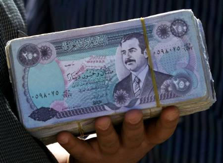 為緩和小面額鈔票緊缺,央行趕緊下令印制價(jià)值數(shù)百萬美元的紙鈔。這種紙鈔的畫面正是薩達(dá)姆年青,梳著整齊頭發(fā),扎著整齊領(lǐng)帶的照片。對(duì)此,央行官員無可奈何地表示:“這我們也沒有辦法,因?yàn)橐粫r(shí)半時(shí)根本來不及換印鈔版。”(聞新芳)