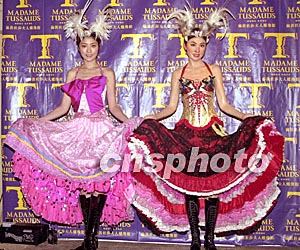 歌星陳慧琳6月11日在香港山頂杜夫蠟像館親自為其蠟像揭幕,她與其蠟像均特意挑選于去年在演唱會(huì)所穿的Can Can舞衣作為蠟像服飾。鄧慶樂 攝