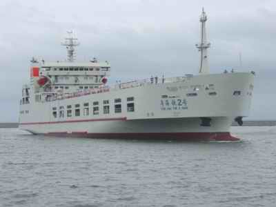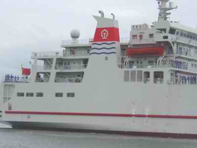 據(jù)了解,“鐵二號(hào)”從設(shè)計(jì)到造型、從長(zhǎng)相到身材,幾乎和“鐵一號(hào)”沒(méi)有什么差異?傞L(zhǎng)度一百六十五點(diǎn)四米,寬二十二點(diǎn)六米,排水量一萬(wàn)二千四百?lài)崳d車(chē)重量四千二百?lài),主甲板可以載貨運(yùn)列車(chē)車(chē)廂四十節(jié)或客運(yùn)列車(chē)十八節(jié)、旅客一千三百六十人。