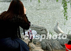 六月的北京園林中,人工飼養(yǎng)的白色和平鴿好似模特學(xué)會(huì)走貓步擺甫士,任游人拍照謀殺菲林。中新社記者 賈國榮 攝