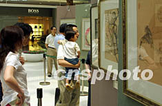 年過八旬的國畫大師程十發(fā)先生,十五日在上海恒隆廣場(chǎng)舉行“桃李情·程十發(fā)師生藝術(shù)畫展”,吸引眾多上海市民前往參觀。作者:湯彥俊