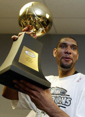 這也是馬刺隊(duì)史上第二座總冠軍,鄧肯獲選最有價(jià)值球員(MVP)。鄧肯毫無(wú)意外拿下決賽最有價(jià)值球員獎(jiǎng),他在這個(gè)系列戰(zhàn)中,平均攻下二十四點(diǎn)二分,抓下十七個(gè)籃板,送出五點(diǎn)三次助攻以及五點(diǎn)三次阻攻,其中季后賽總阻攻數(shù)一百三十一次,刷新NBA季后賽紀(jì)錄,而今天單場(chǎng)八次阻攻,也追平了總冠軍賽單場(chǎng)阻攻紀(jì)錄。