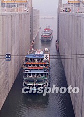 組圖:長江三峽雙線五級船閘完成試通航