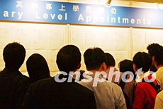 2003年6月17日,香港政府公布最新一季失業(yè)率,稱其升至8.3%的歷史高位,主要原因是SARS對勞工市場的影響加劇。圖為正在此間舉行的勞工處招聘坊,提供570個空缺,吸引眾多香港專業(yè)人士前往應(yīng)聘。中新社記者:潘索菲