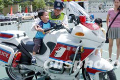 2003年6月22日,香港警務(wù)處在維多利亞公園舉行的“同心攜手畫出彩虹”嘉年華活動(dòng)上,展示警用電單車。中新社記者 錢興強(qiáng)