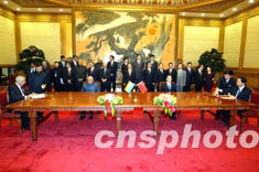 中國總理溫家寶與印度總理瓦杰帕伊二十三日上午在北京人民大會(huì)堂舉行會(huì)談,并出席中印關(guān)于簡化簽證手續(xù)的諒解備忘錄等九個(gè)文件的簽字儀式。中新社記者:毛建軍