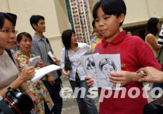 世界衛(wèi)生組織6月23日將香港剔除出疫區(qū),淘大花園的小朋友興奮地向記者展示漫畫,準備送給特首董建華以示謝意。中新社記者 洪少葵