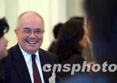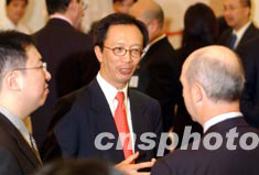 香港財(cái)政司司長梁錦松,6月24日在禮賓府特設(shè)的酒會(huì)上,與六家在香港新設(shè)或擴(kuò)充業(yè)務(wù)的海外投資商交談甚歡。 中新社記者 洪少葵