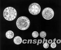 英國伯明翰造幣廠1898年受中國陜西省委托,試鑄了光緒元寶銀幣樣幣全套五枚,從海外回流北京閃亮登場,參加因抗擊非典延期在七月十一日舉行的華辰春季拍賣會,估價一百二十萬元人民幣。中新社記者:賈國榮