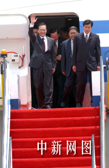 上午十一時(shí)四十分許,溫家寶乘坐的專機(jī)平穩(wěn)降停香港國際機(jī)場(chǎng)。他微笑著走出艙門,向歡迎的人群揮手致意;在走下舷梯中途,他再度揮手。