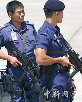 中國(guó)國(guó)務(wù)院總理溫家寶,六月二十九日中午乘專機(jī)抵達(dá)香港國(guó)際機(jī)場(chǎng),在香港進(jìn)行為期三天的訪問(wèn)。圖為香港國(guó)際機(jī)加強(qiáng)警戒。中新社記者 錢興強(qiáng) 攝