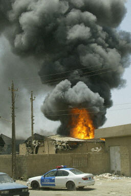 伊拉克首都巴格達(dá)市中心一個(gè)倉(cāng)庫(kù)6月28日發(fā)生火災(zāi)。兩名伊拉克人在火災(zāi)現(xiàn)場(chǎng)被逮捕。
