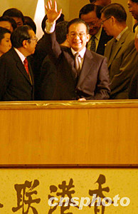 國務(wù)院總理溫家寶六月三十日下午到香港交易所參觀,向在場人士揮手致意。中新社記者 錢興強 攝