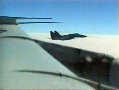 在五角大樓公布的錄像帶中,人們可以看到一名朝鮮戰(zhàn)斗機(jī)飛行員在他的座艙內(nèi)打手勢(shì),顯然是要求美軍偵察機(jī)離開這一空域。