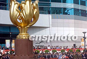 慶祝香港回歸祖國六周年的升旗禮,7月1日早上在香港灣仔金紫荊廣場(chǎng)舉行,整個(gè)升旗儀式簡短而莊重。中新社記者 錢興強(qiáng) 攝