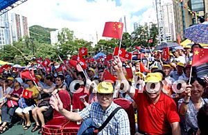 7月1日,市民以輕松愉快的心情,在維園舉辦大型慶祝香港回歸祖國活動(dòng)中揮舞國旗,紀(jì)念香港回歸祖國。洪少葵 攝